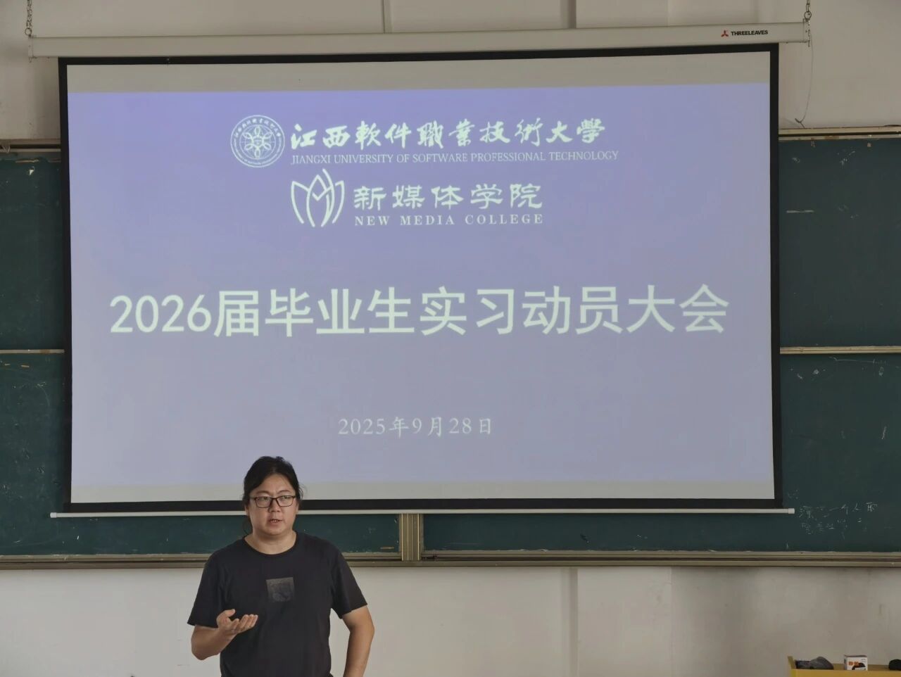 为引导毕业生明确实习目标,科学规划职业生涯,顺利完成从校园到职场的关键过渡,9月28日,新媒体学院在A11-404教室召开了毕业生实习动员会。副院长出席会议并作动员讲话。教务科陈嘉祥老师、毕业班级的辅导员以及即将在2026年毕业的2022级全体同学共同参会。