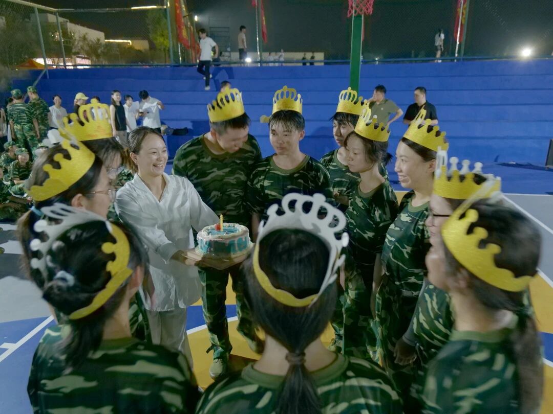 最令人动容的环节出现在尾声——一场为九月生日新生准备的惊喜庆祝。主持人邀请“幸运同学”上台后,兰老师捧着蛋糕缓缓走来,全场一同合唱生日歌。十多位寿星从一脸茫然到满脸笑容和感动。他们在烛光中闭上双眼、默默许愿。这份突如其来的温暖,注定成为他们迷彩青春中最珍贵的一页。