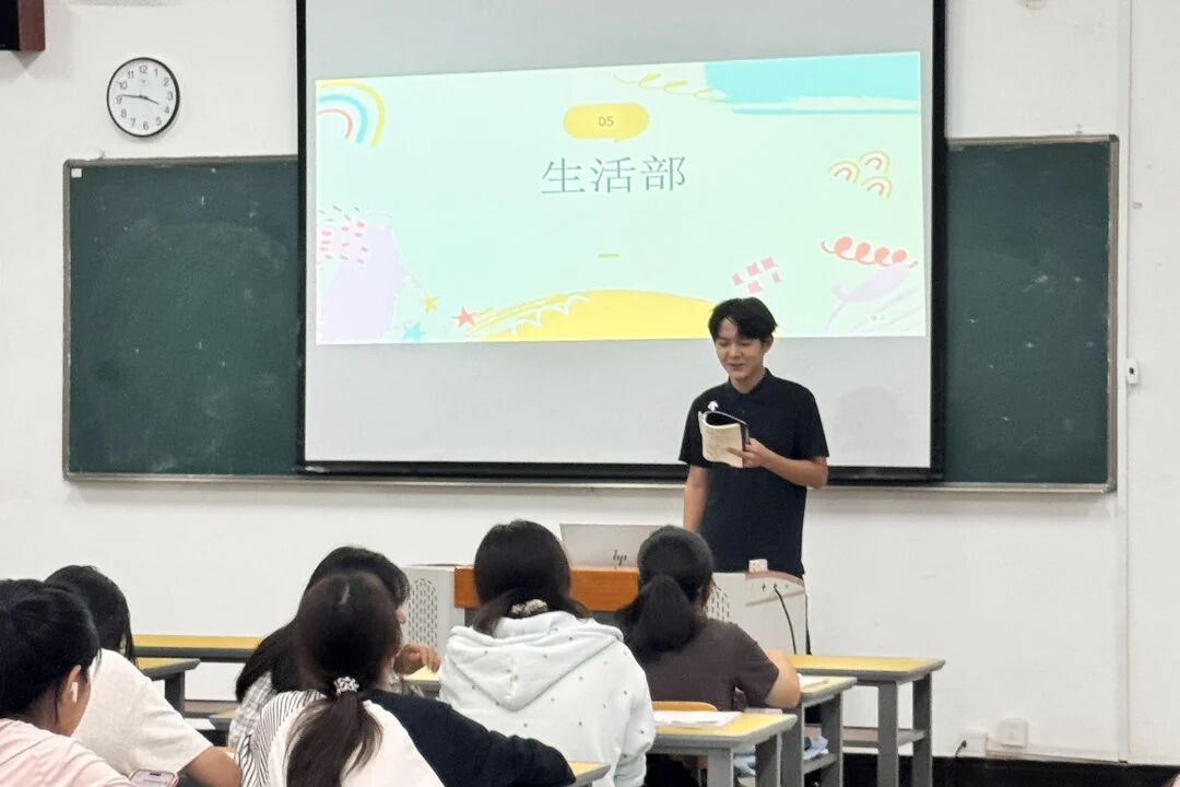 活动中,学生团总支副书记结合自身经历,分享了在策划团日活动、参与志愿服务等方面的收获,展现了团总支在能力锻炼与个人成长方面的平台作用。团总支的组宣部、实践部、纪检部等部门负责人也依次登台,通过图文影像等多种形式,生动介绍了部门职能、品牌活动及招新要求,体现出团总支务实进取、服务同学的组织风貌。