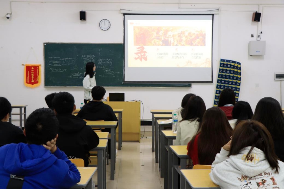 活动中,学生党员颜如玉对经典著作《长征》进行了深入解读。她以“长征精神:理想信念的力量”为题,系统梳理了长征波澜壮阔的历史背景与艰苦卓绝的奋斗历程,重点剖析了四渡赤水、飞夺泸定桥等关键战役。通过生动详实的讲述,再现了红军将士在极端恶劣环境中展现出的坚定信念、非凡勇气与巨大牺牲精神,深深感染了在座每一位新生。