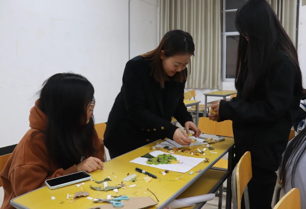 活动伊始,辅导员李婷老师为同学们进行了简短而富有深意的导入讲解。她结合秋日季节特征,引导学生思考自然的馈赠,树立“爱护环境、感恩自然”的价值观,并简要介绍了树叶相关的植物学知识,如叶脉功能、树叶变色原理等,激发了同学们的探索兴趣与创作欲望。