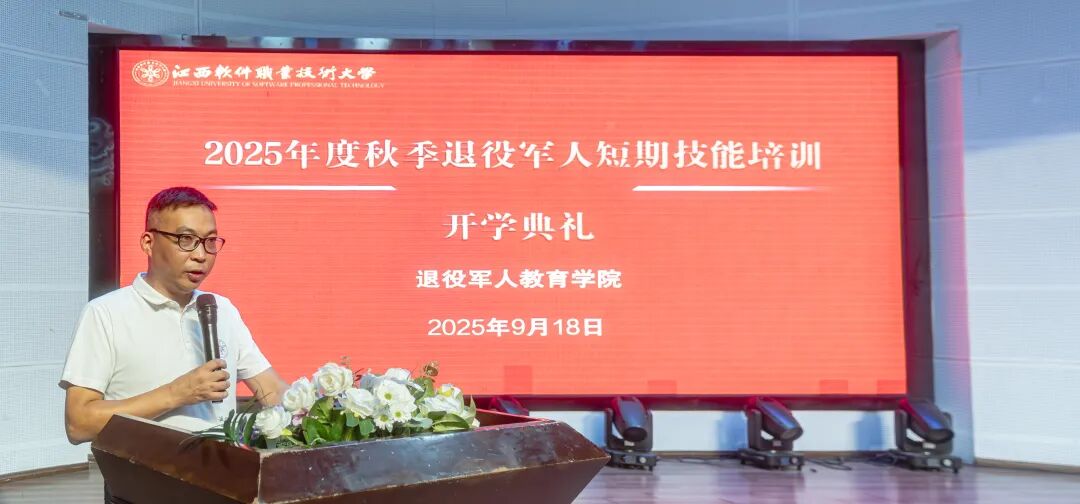金秋时节,丹桂飘香。2025年9月18日,江西软件职业技术大学退役军人教育学院2025年度秋季短期技能培训开班典礼在学术报告厅隆重举行。学院全体教职工与参训学员共同参加典礼,现场气氛庄重热烈。